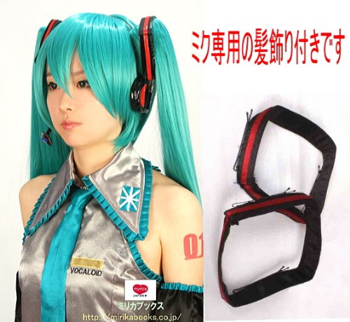 初音ミク ウィッグ おまけに 1 髪飾り 2 ヘアネット ロングウィッグ バンス タイプ