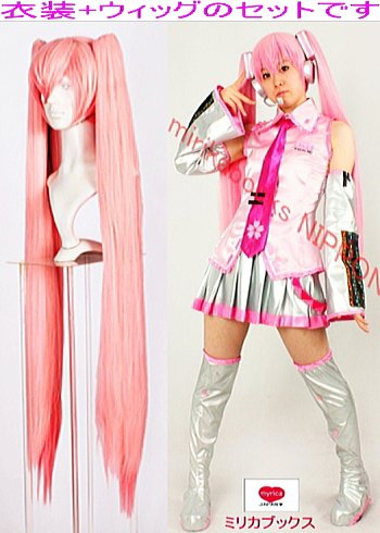 VOCALOID コスプレ 衣装 桜ミク 9点 フルセット ウィッグ付 Mサイズ ヘアネットおまけ付